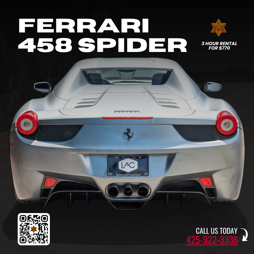 The Ferrari 458 Spider is a stunning convertible that combines exhilarating performance with unparalleled style. Powered by a 4.3-liter V8 engine, it delivers an incredible driving experience with precision handling and a spine-tingling exhaust note.